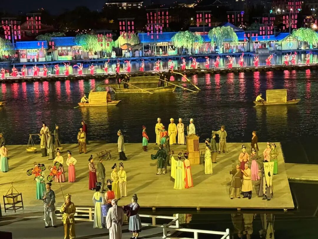 作为本次活动的压轴大戏,夜幕降临时,我们移步观赏了清明上河园倾力打造的标志性大型水上实景演出——《大宋东京梦华》!恢弘壮阔的场景、绝美绚烂的光影、婉转动人的古词乐舞,早已深深烙印在每一位到场者的心中。水岸为幕,星河作伴,八阙宋词串联起北宋王朝的兴衰荣辱与市井风貌的万千气象。当尾声《水调歌头》的旋律响起,漫天华彩,如梦似幻,为我们这场酣畅淋漓的汴梁之游,画上了一个最为璀璨、余韵悠长的句点!