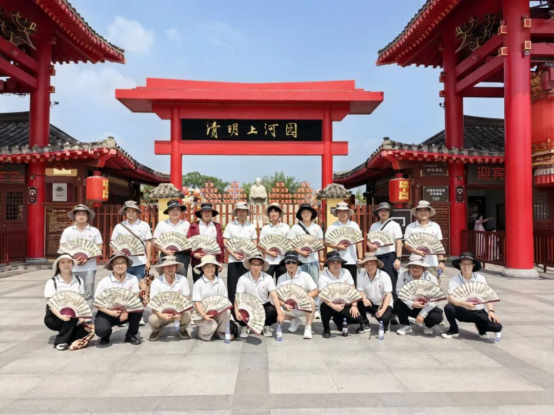 清晨的清明上河园,沐浴在朝阳之下,古韵盎然。在气势恢宏的“清明上河园”牌坊前,四知堂的伙伴们留下了今夏的第一张集体记忆。团队色彩融入古色古香的朱红牌坊与仿宋城垣,每个人手中轻摇的绘扇,为这古典的入口增添了几分儒雅与灵动。“茄子——”一声,时光仿佛在此刻凝固,宣告着一场精彩纷呈的文化寻梦之旅正式启程!