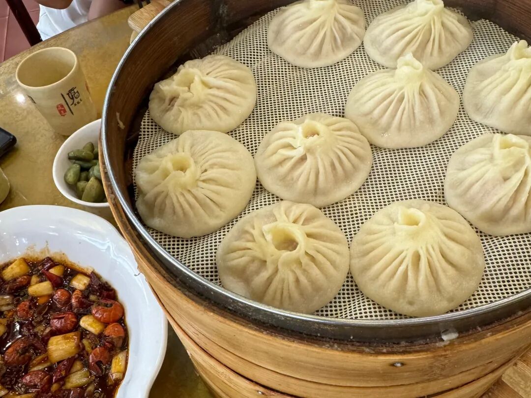 正所谓“民以食为天”,穿越之旅怎能少了舌尖上的体验?中午时分,四知堂特别安排大家在有着悠久历史的开封第一楼用餐。席间,最令人瞩目的莫过于开封地道名吃——灌汤包!薄如蝉翼的皮儿裹着浓郁的馅料和鲜美的汤汁,轻轻提起,小心翼翼地咬上一口,汤汁漫溢,瞬间俘获味蕾,大家赞不绝口。一盘盘清爽凉菜,道道精致,大家围坐一起,品尝美食,畅叙情谊,气氛温馨而热烈。